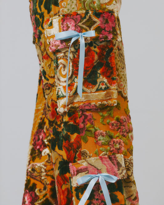 In an effort to use the overabundance of materials that already exist, all of our products are handmade with secondhand/scrap fabric and trims. All items are pre-order.